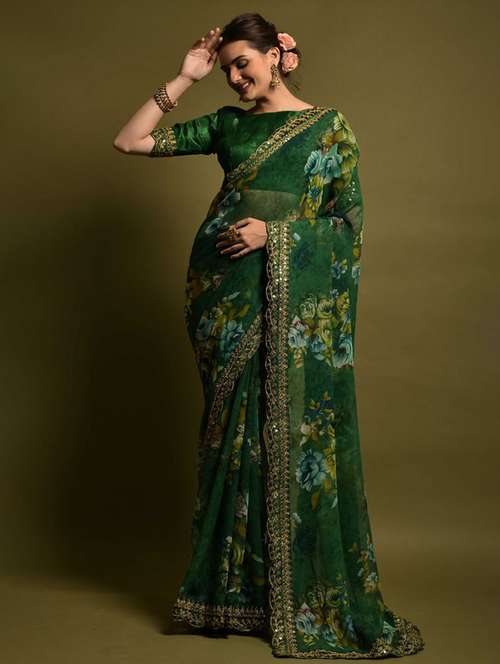 women floral printed bordered saree with blouse
