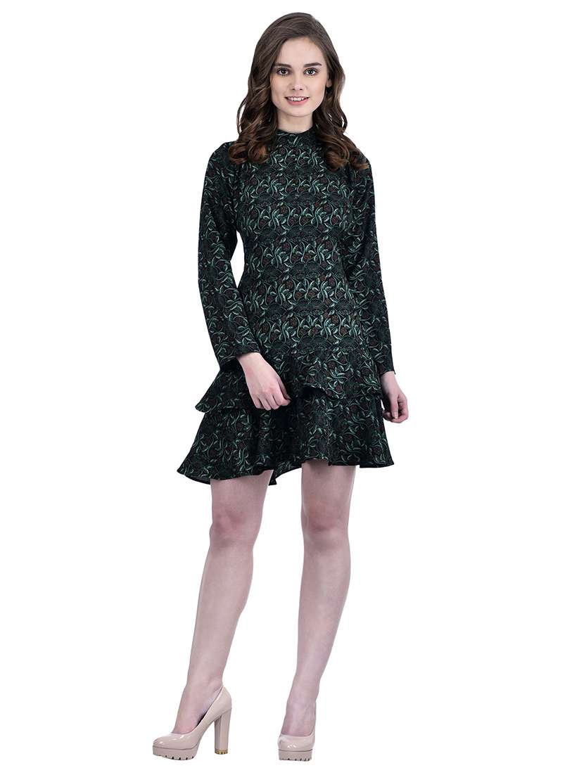 black floral printed detailed mini dress