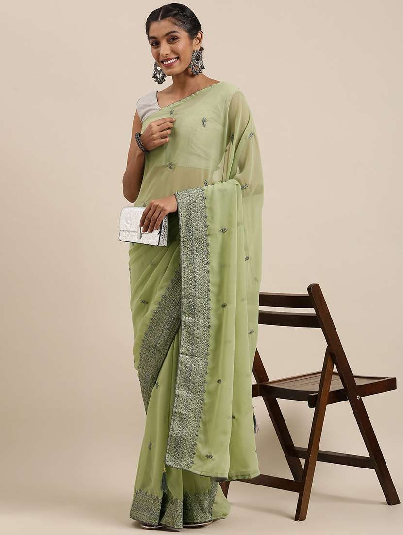 - » green georgette embroidered saree with blouse