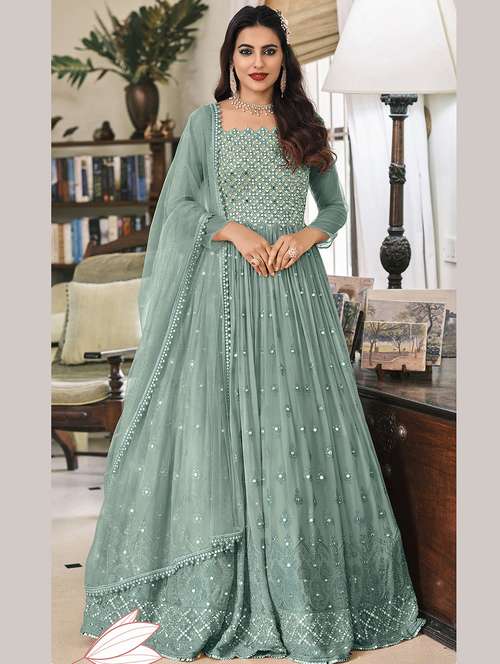 embroidered semi-stitched suit set - 20007080 - Very Small Image - 1