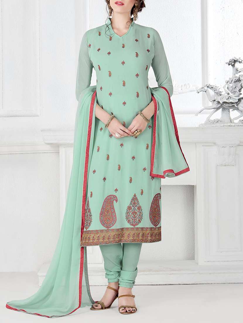 green semi-stitched churidaar suit - 14158572 - Very Small Image - 1
