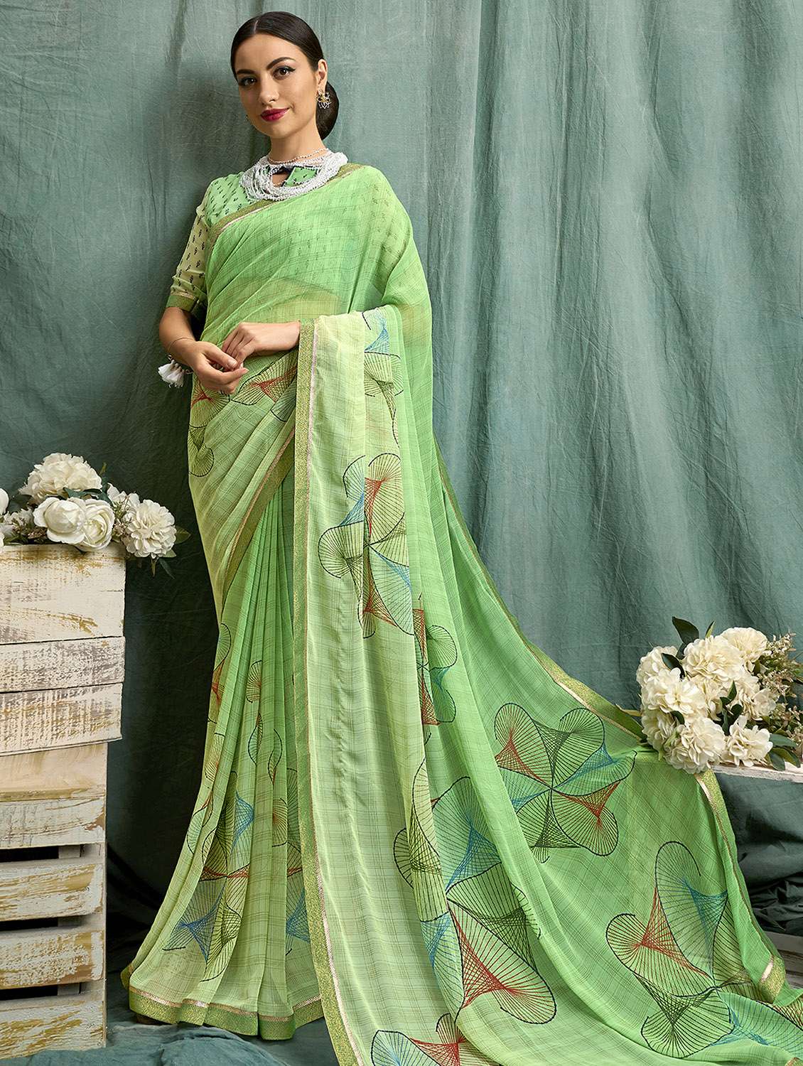 abstract printed saree with blouse