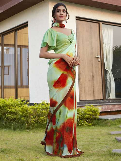 - » women's floral light green colored saree