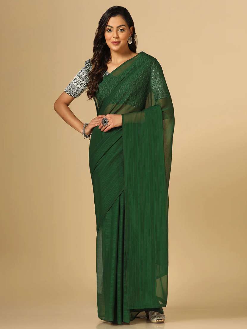women green plain georgette saree with blouse