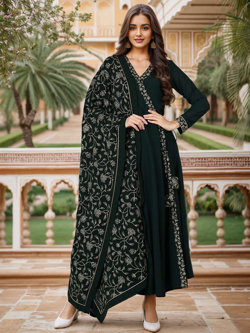 - » green solid angrakha suit set