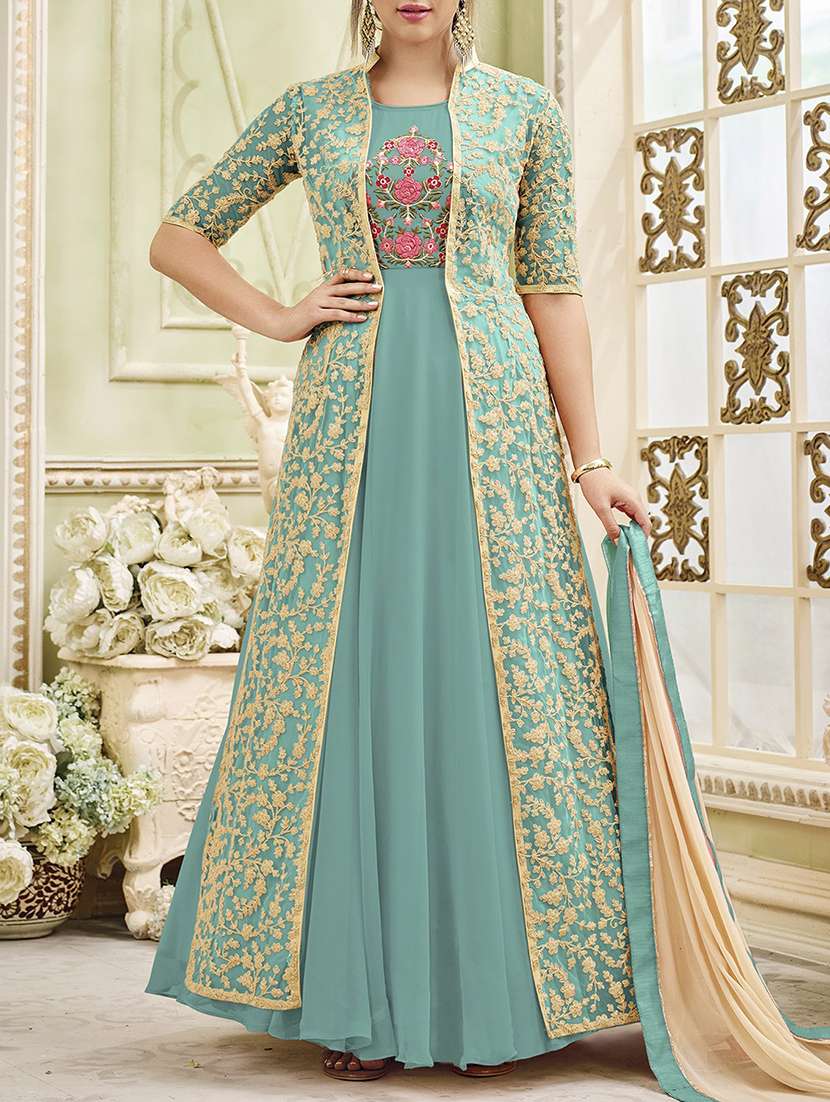 blue georgette semi-stitched anarkali suits - 15087697 - Very Small Image - 1