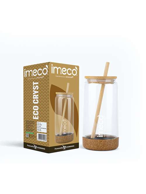 - » imeco eco cryst borosilicate glass sipper with bamboo lid & reusable straw 500 ml - light green
