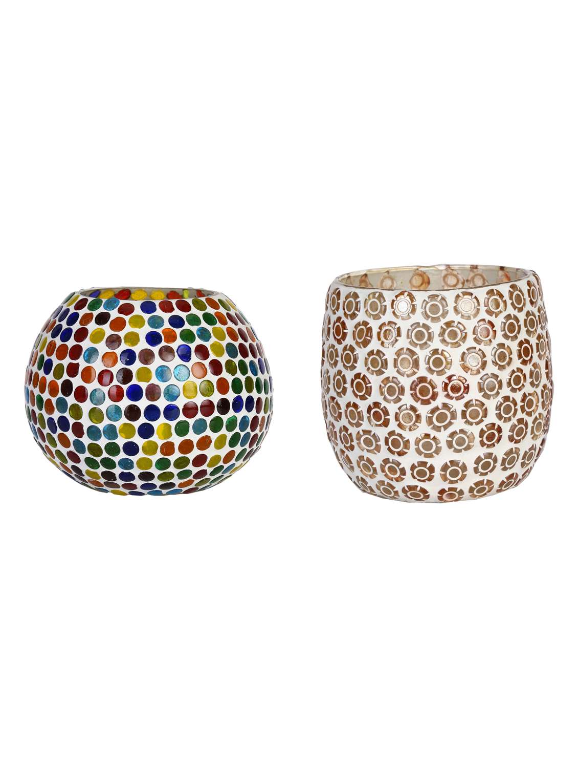 candle & tea light holder decorated with glass chips, colorful lighting effects, pack of 2