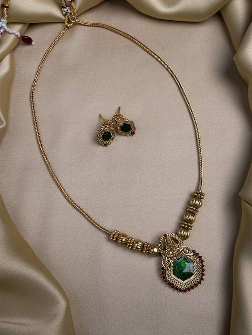 - » gold plated green meenakari and beads necklace set