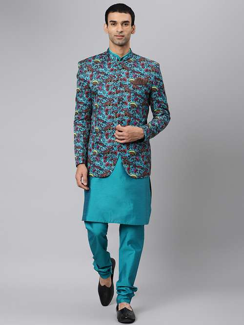 men printed kurta pyjama with jacket - 18409521 - Very Small Image - 1