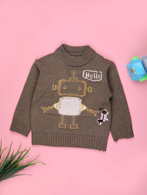 boys self design long sleeve sweater