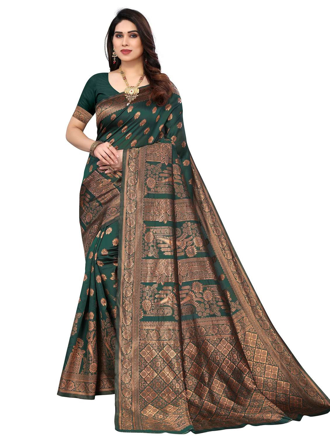 - » women's self design green colored saree with blouse