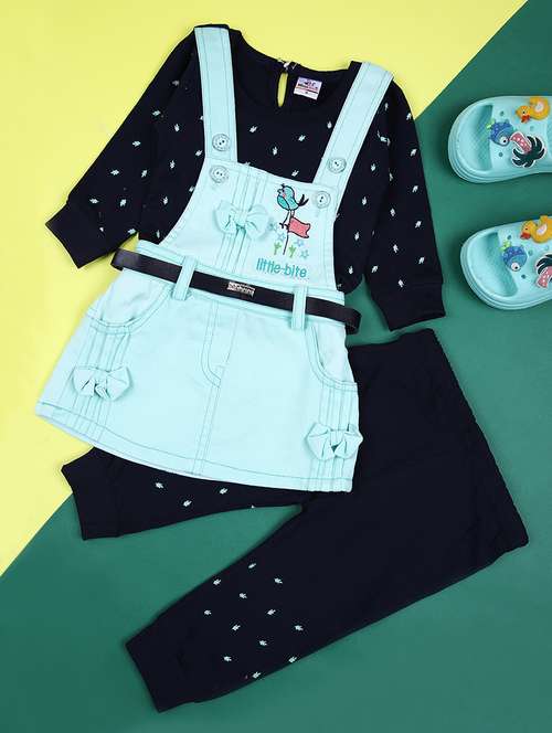 - » girls printed long sleeves dungaree full length set