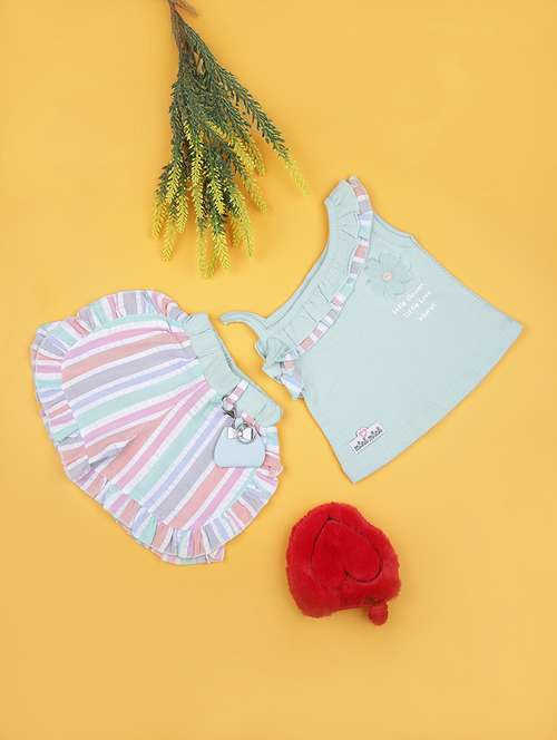 girls striped top & shorts twin set