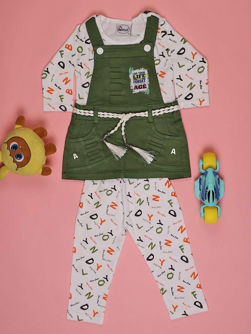 - Browse through the huge collection of casual wear twin sets and jump suits for girls in green colors and designs to make your young lady look the fashionista that she is.
