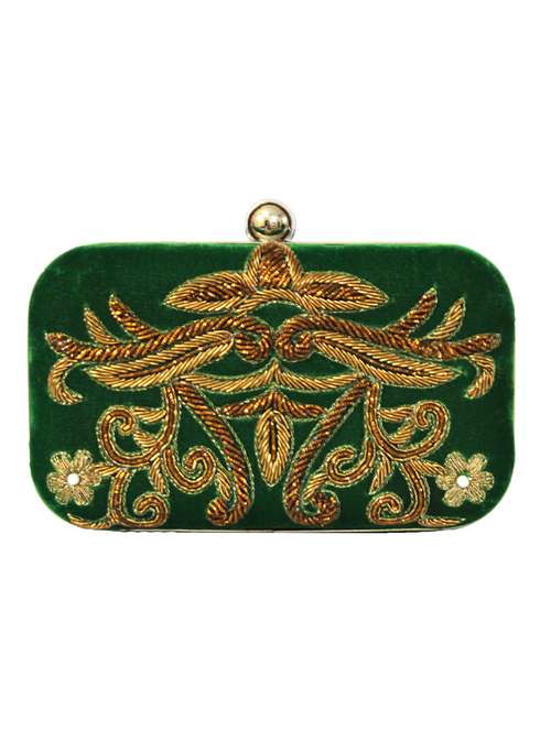 green color, leatherette box clutch