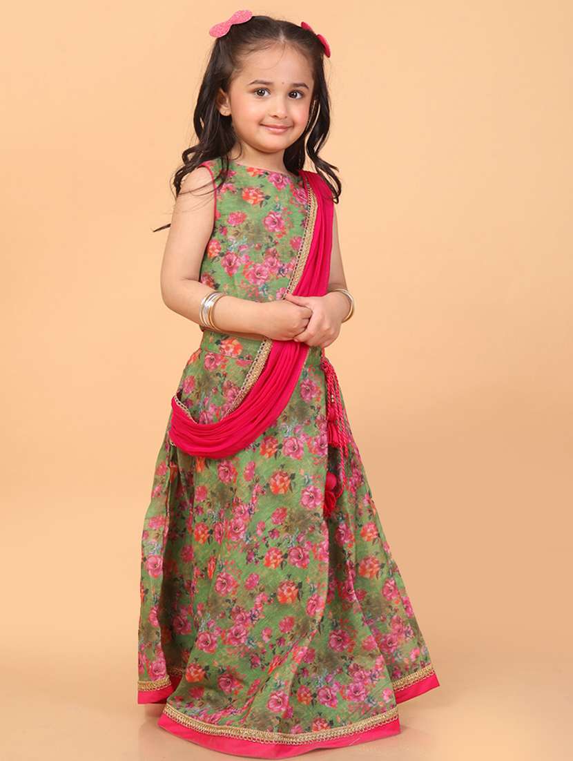 girls floral printed lehenga choli set with dupatta