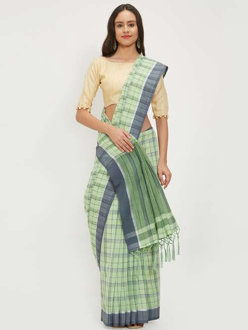 - » checkered linen handloom saree with blouse