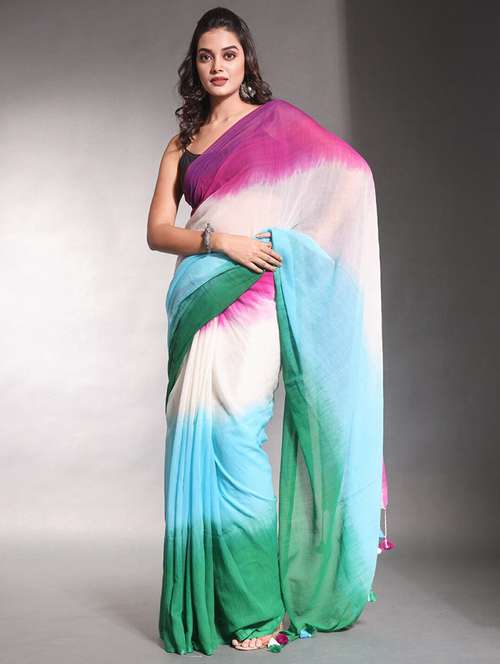 women ombre printed saree with blouse