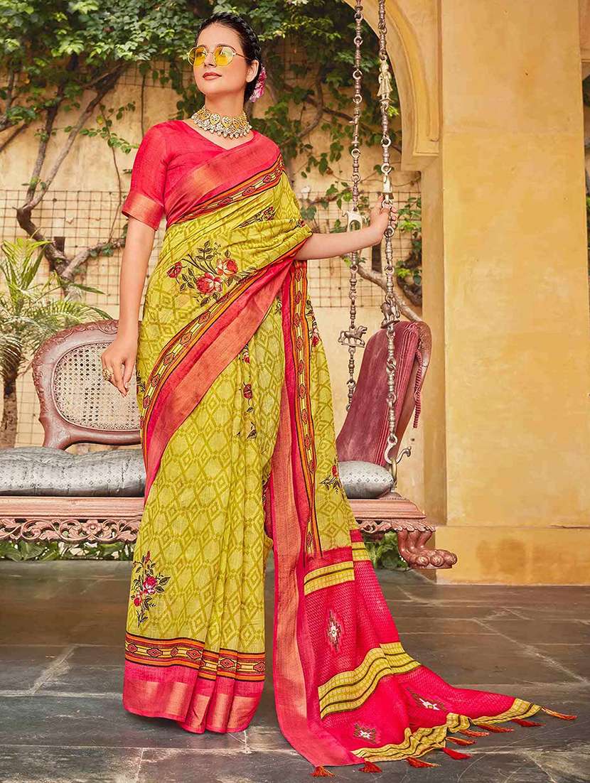 women printed bordered saree with blouse - 21722744 - Very Small Image - 1