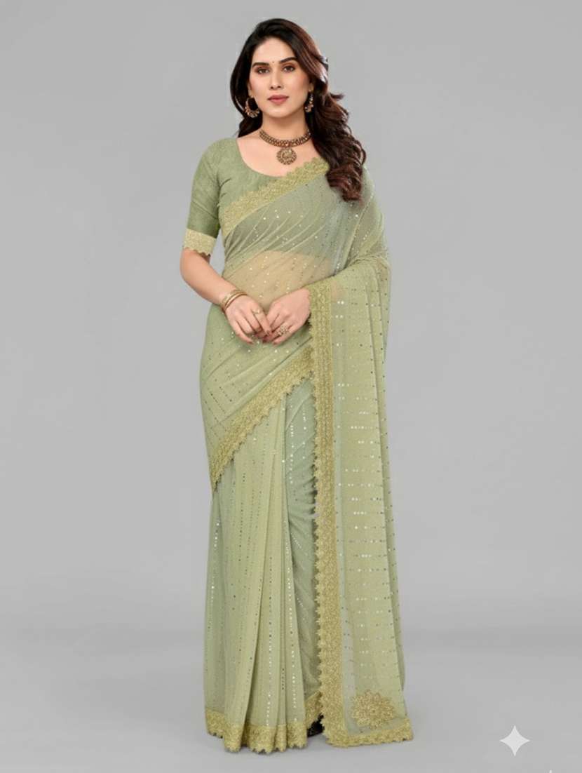 women solid with work embellished saree with blouse - 22228395 - Very Small Image - 1