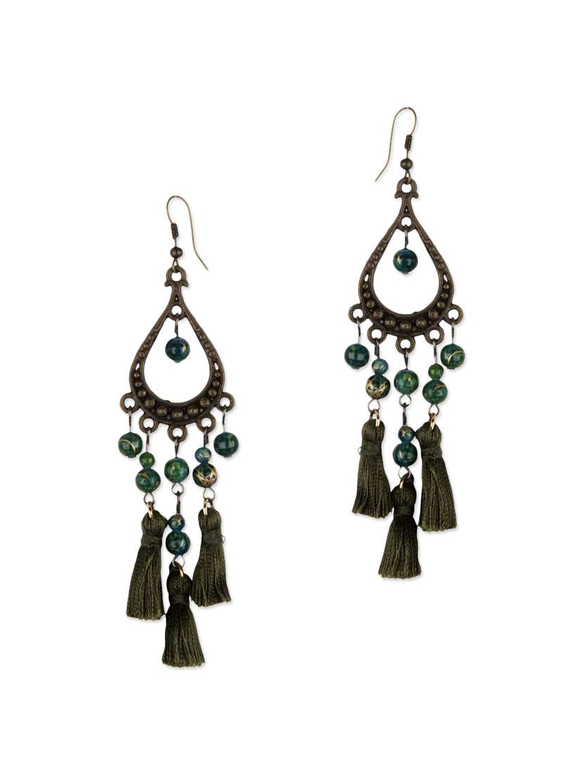 Antique gold tassel trim metal alloy tassel earrings - 13077497 - Very Small Image - 1