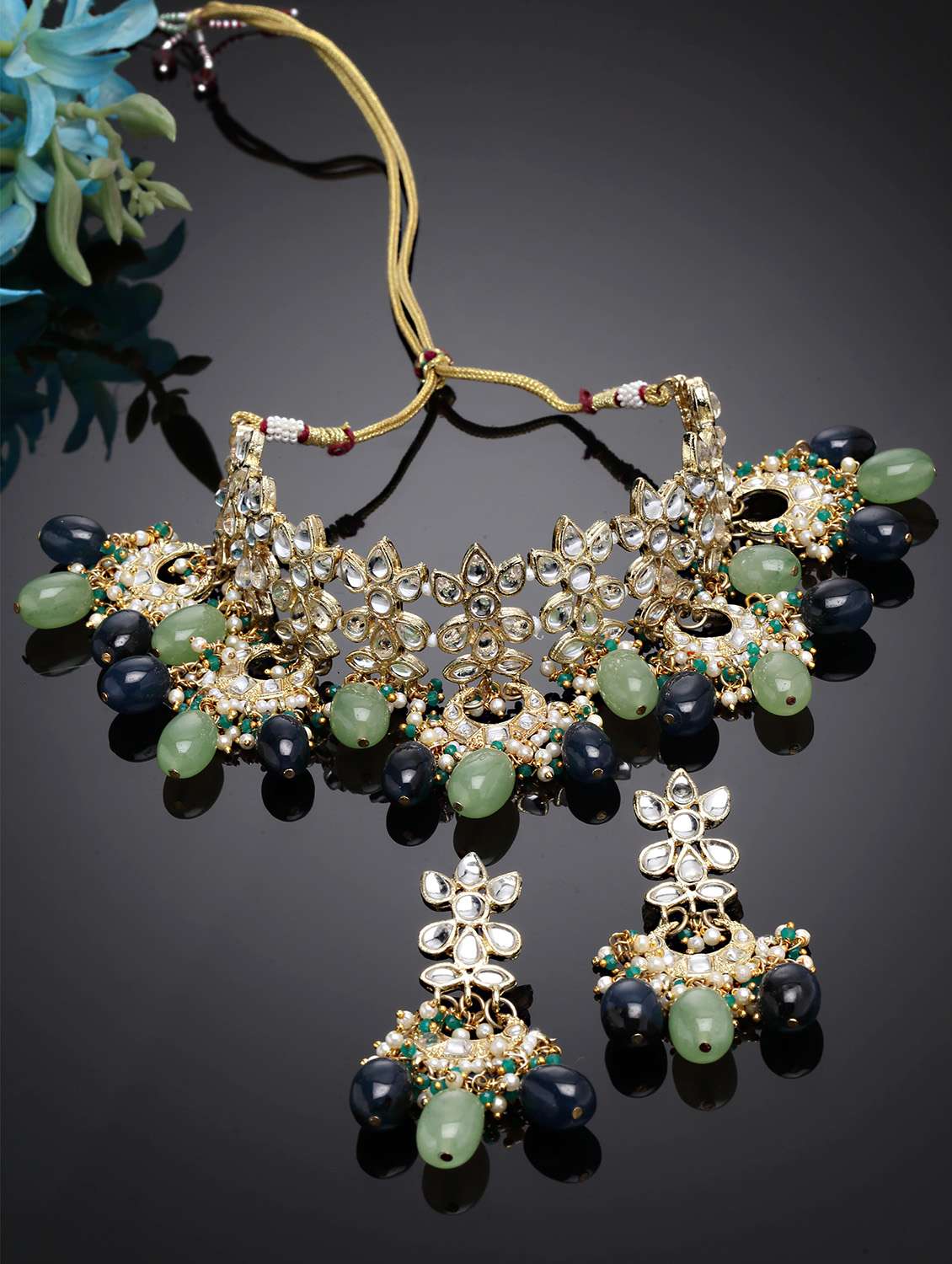 - » karatcart gold plated light green and blue tumble studded kundan choker necklace set