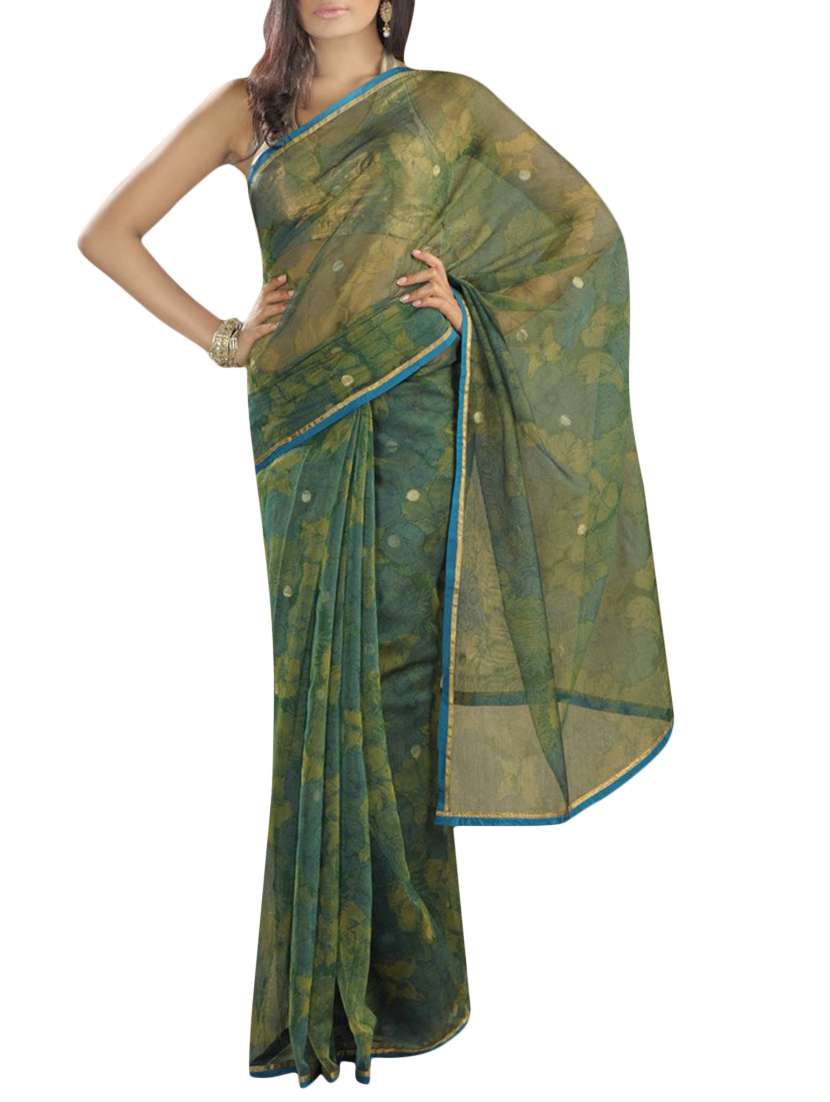 - » fuchsia designs green printed saree with blouse