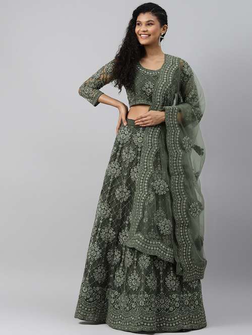 - » green net aline lehenga