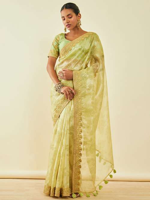- » women's floral green colored saree