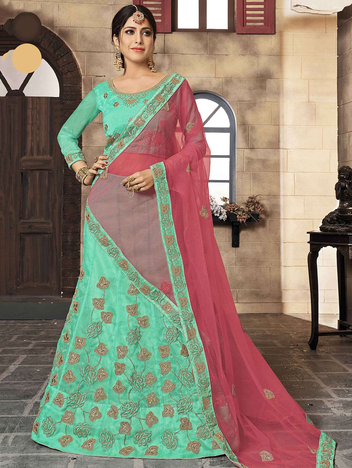 embroidered a-line lehenga - 17205899 - Very Small Image - 1