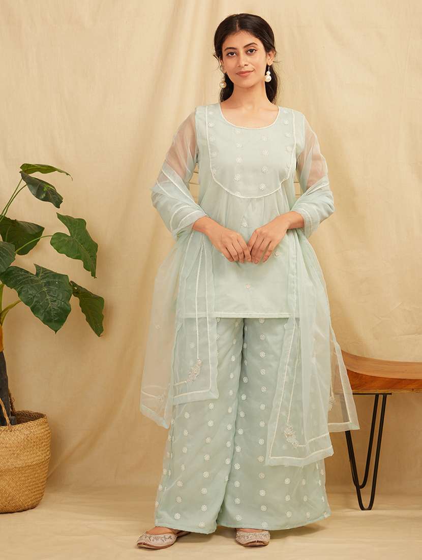 - » women three quarter sleeve kurta palazzo with dupatta set