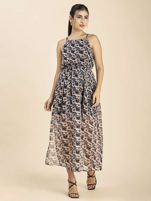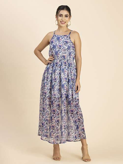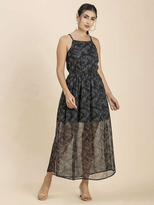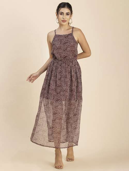- Dress up in a soothing pattern and don this dress made of poly chiffon material.