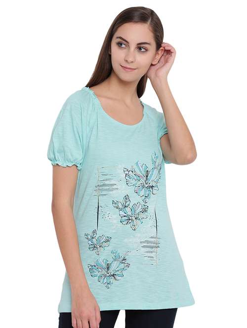 - Opt for this top made up of poly cotton material and get it in a round neck design.