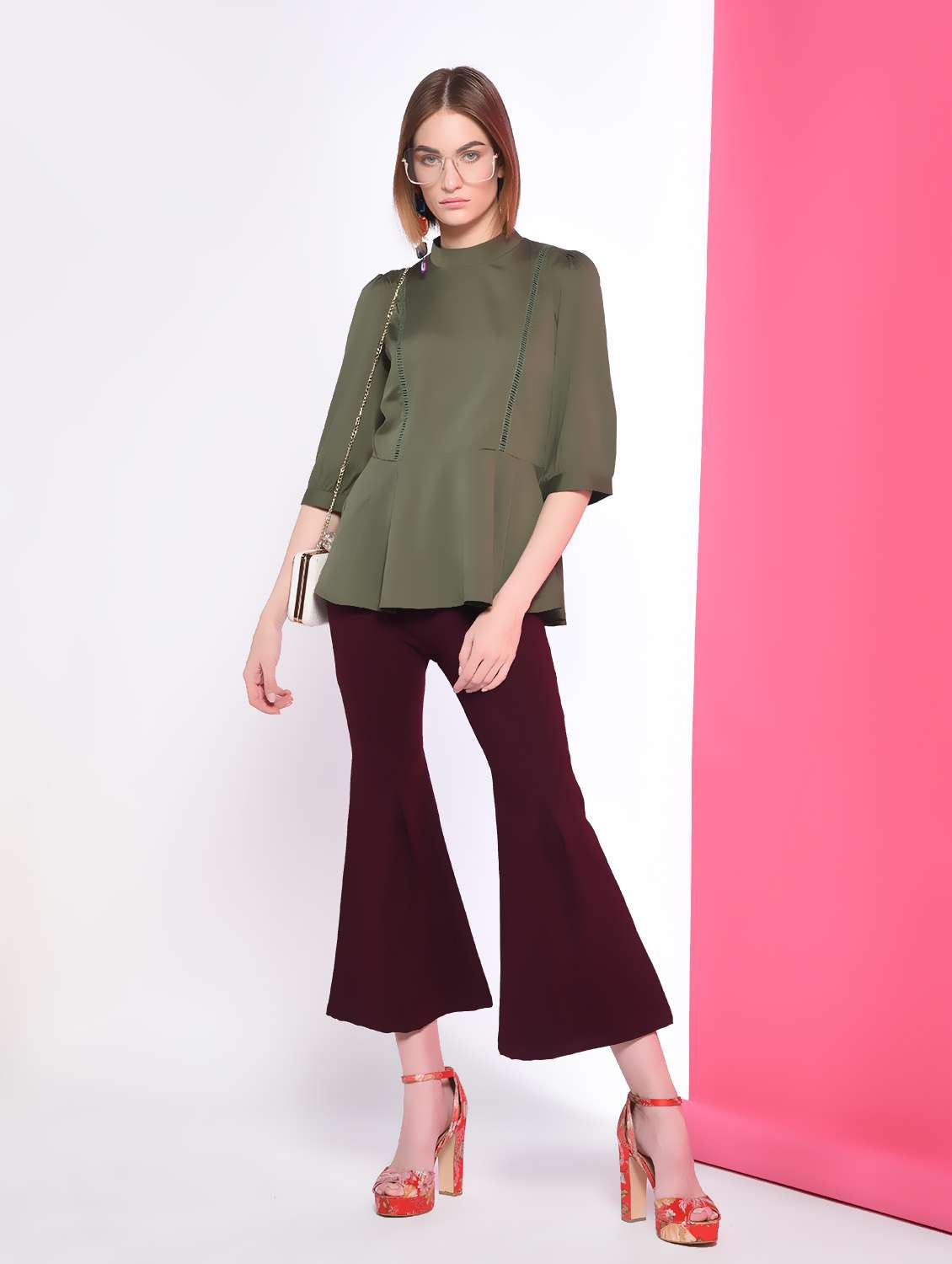 - » mock neck pleat detail top