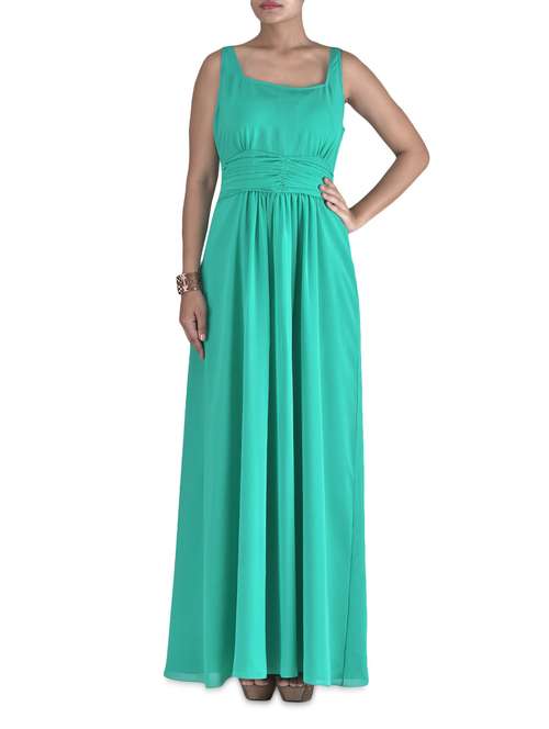 - » green poly georgette solid maxi dress