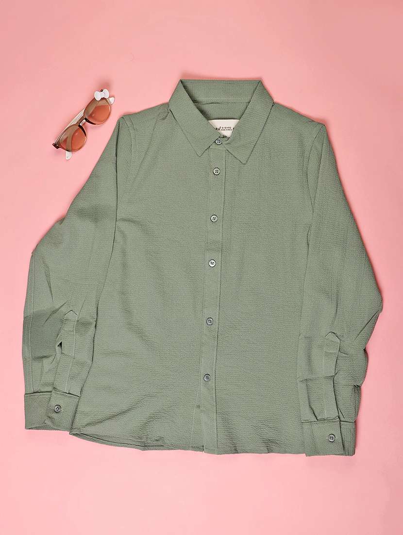 boys solid collared long sleeve shirt