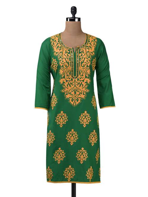- » green printed sequined neckline kurti