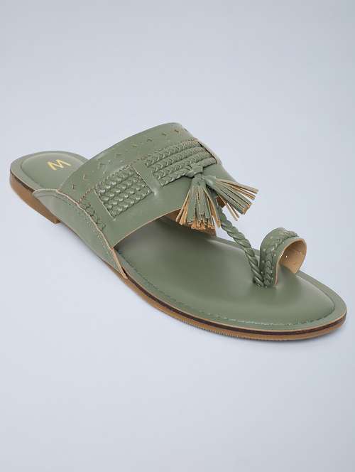 green pu slip on sandals