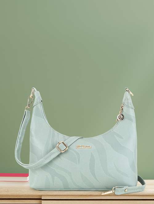 - » women sea green textured sling bag