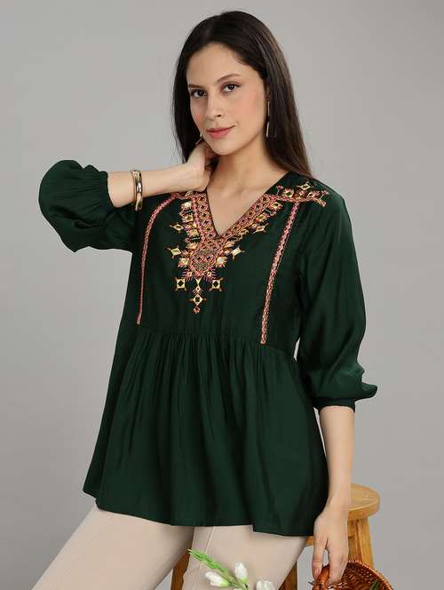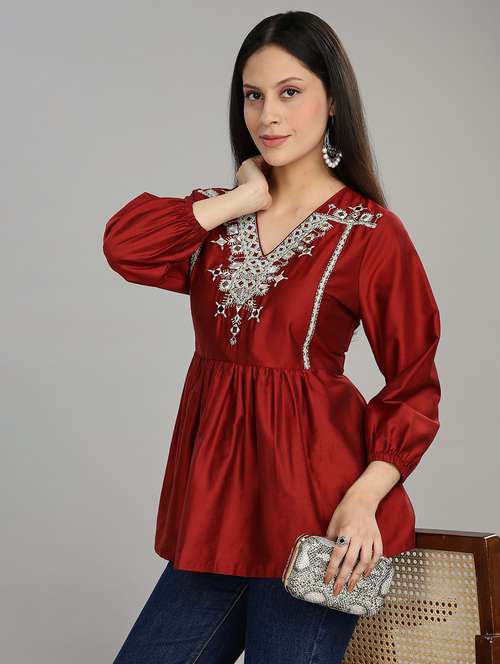 - » women solid with work puff sleeve ethnic top