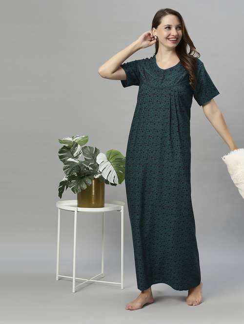 Indulge in luxurious comfort and style with Quira's Women's Floral Lounge Wear Gown in a stunning shade of green. This gown is expertly crafted from high-quality Poly Cotton, ensuring a soft and breathable feel that's perfect for all-day wear. The beautiful flower print and half sleeves add a touch of elegance to your lounging experience, making it suitable for both casual lounging and as comfortable nightwear. The regular fit and round neck design provide a flattering and comfortable fit, while the long length offers extra coverage and warmth for those relaxing moments at home. Whether you're unwinding after a long day or simply enjoying your downtime, this lounge wear gown from Quira ensures you do so in style and comfort.