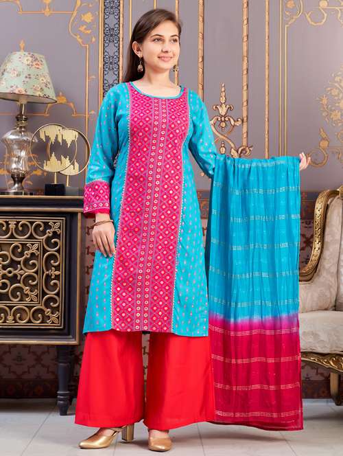 - » girls three quarter sleeve kurta palazzo with dupatta set