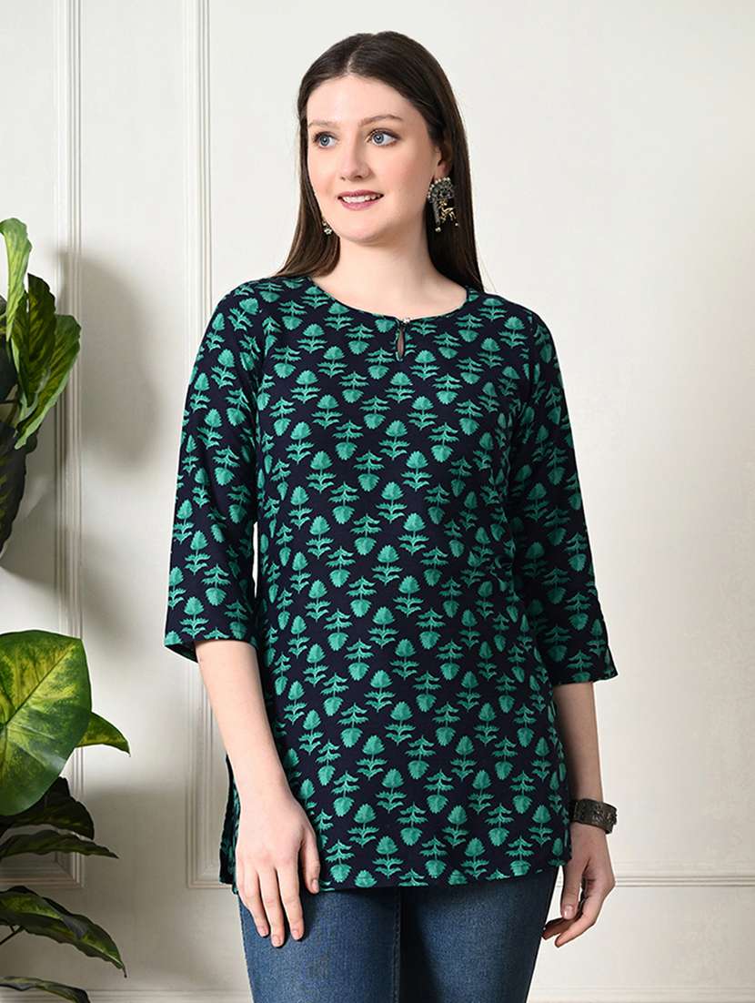 - » women key hole neck printed straight kurti