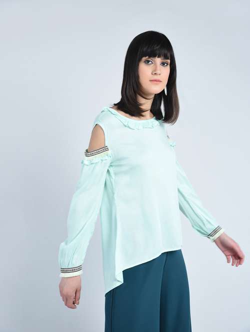 - » aztec lace frill detail cold shoulder top