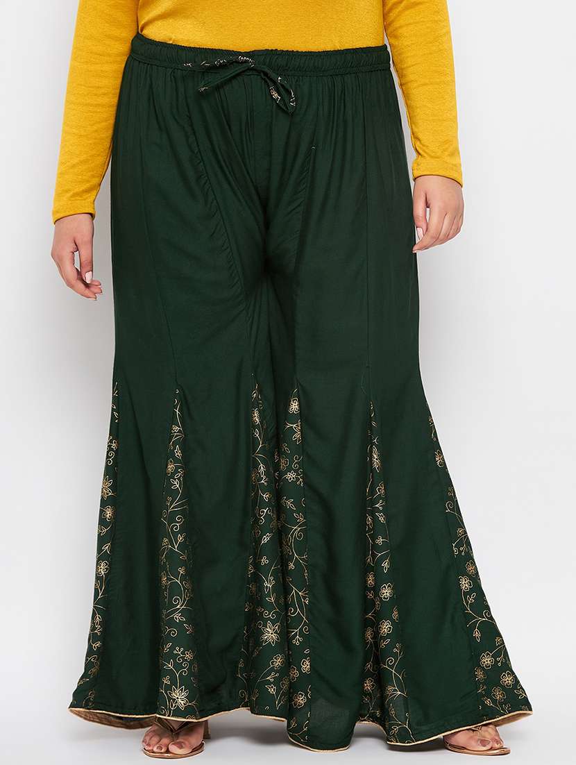 - » green printed paneled flared palazzo