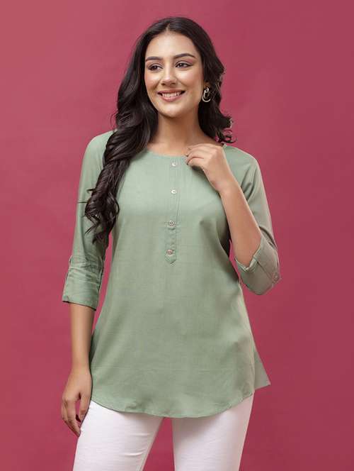 - Opt for this top made up of rayon material and get it in a varied neck design.