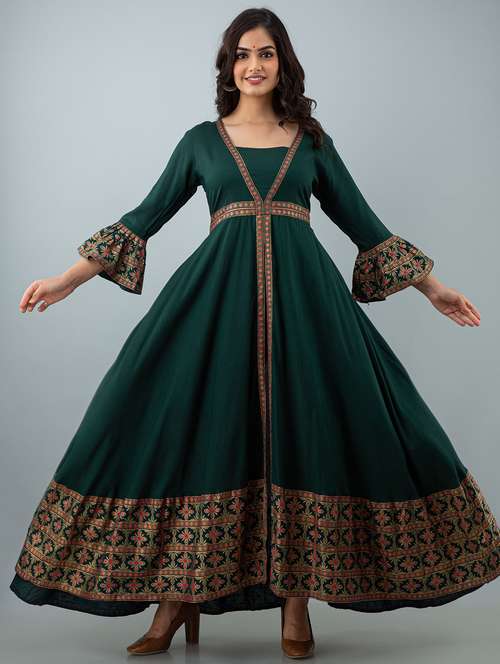 green rayon flared kurta - 18377012 - Very Small Image - 1