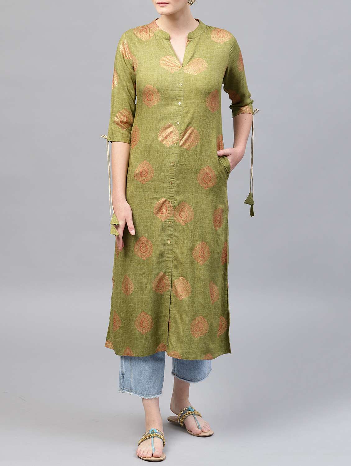 printed straight slit pockets kurta