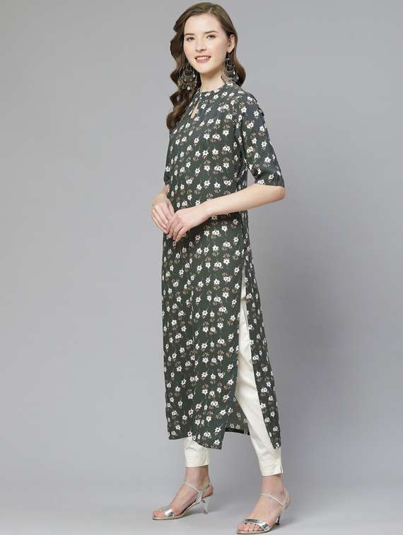 - Grab this beautiful kurta made up of rayon fabric featuring key hole neck designs.